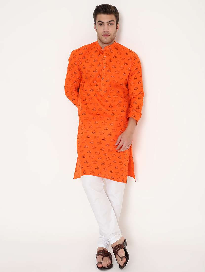 - » men printed mandarin neck long kurta