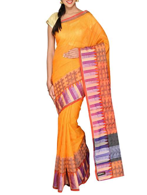 - » orange cotton blend bordered saree with blouse