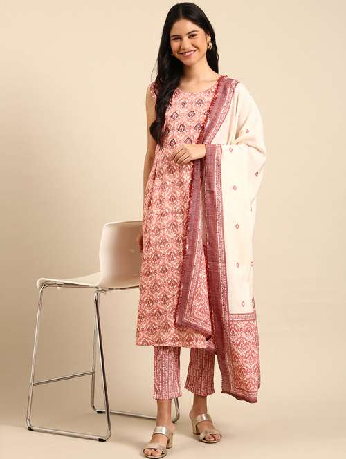 - » women peach sleeveless kurta pant with dupatta set
