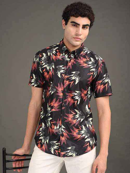 - » men printed short sleeve regular fit casual shirt
