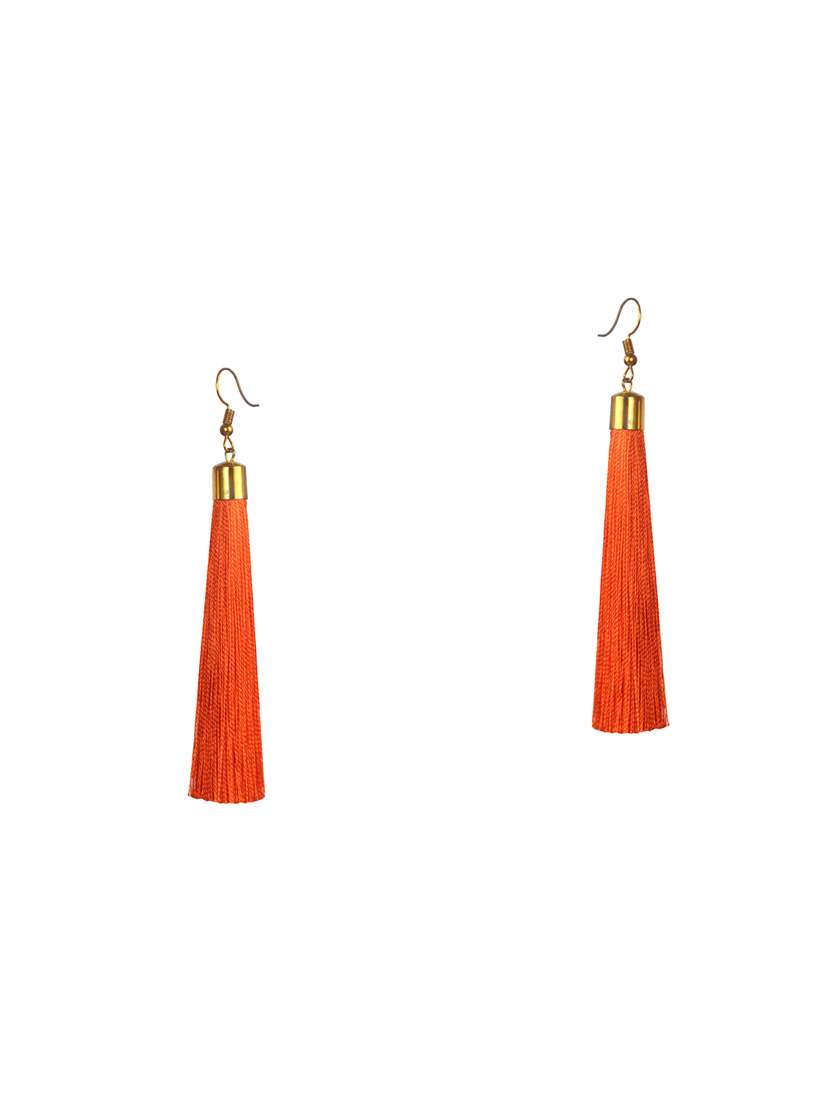 Hook Drop Silk Thread Orange Tassel Earrings For Girls -Orange Color