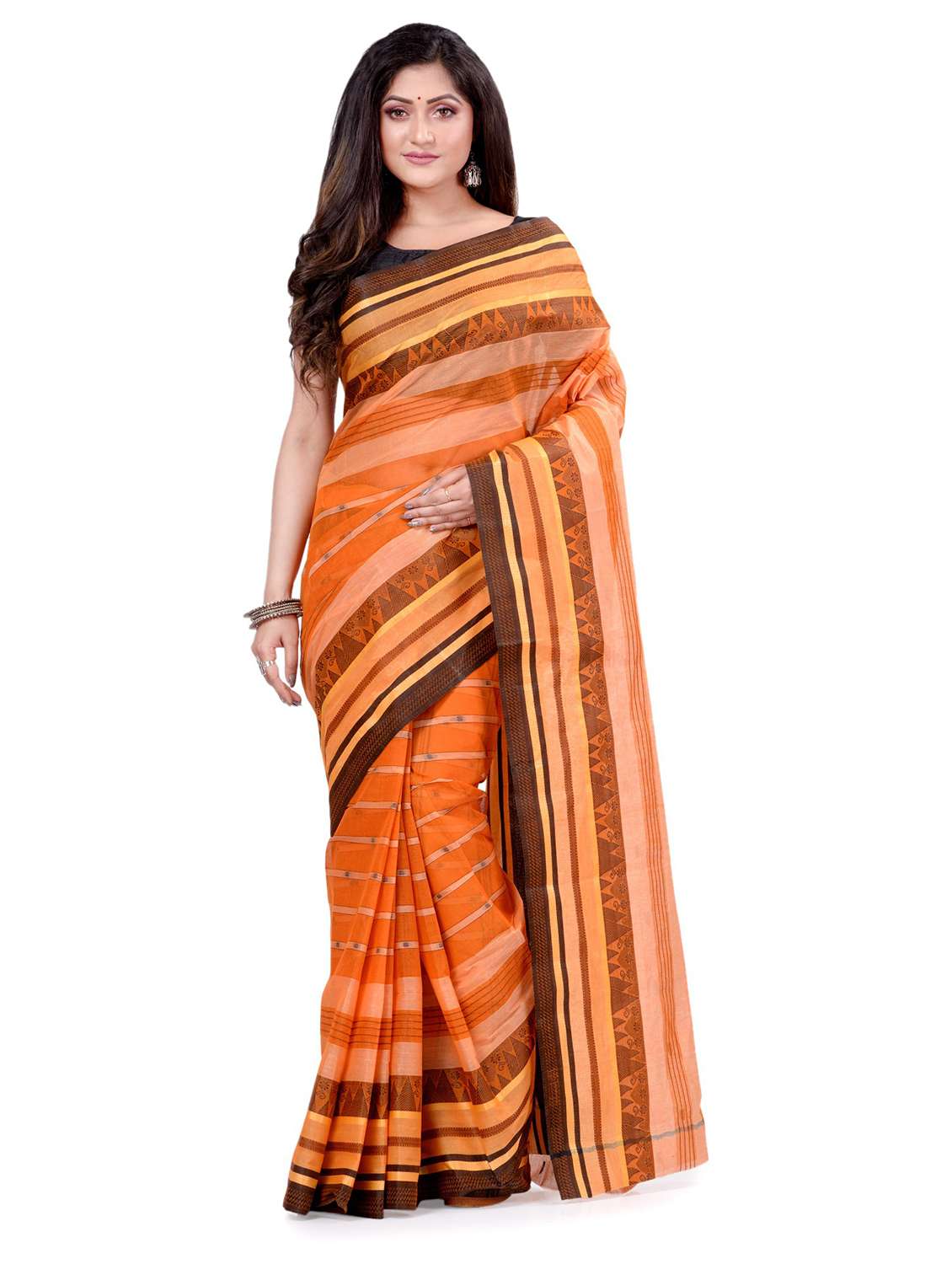 women's self design orange colored saree