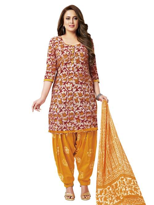 - » printed unstitched patiyala suit set