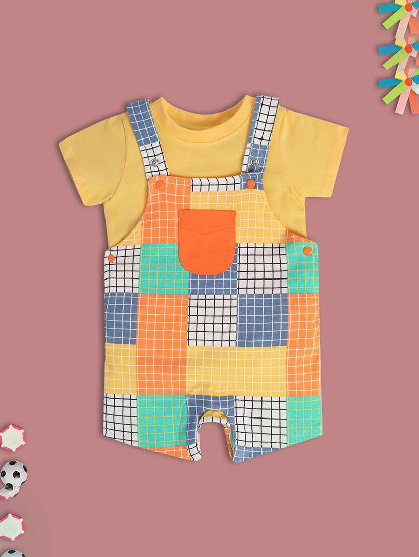 boys checkered t-shirt & dungarees sets