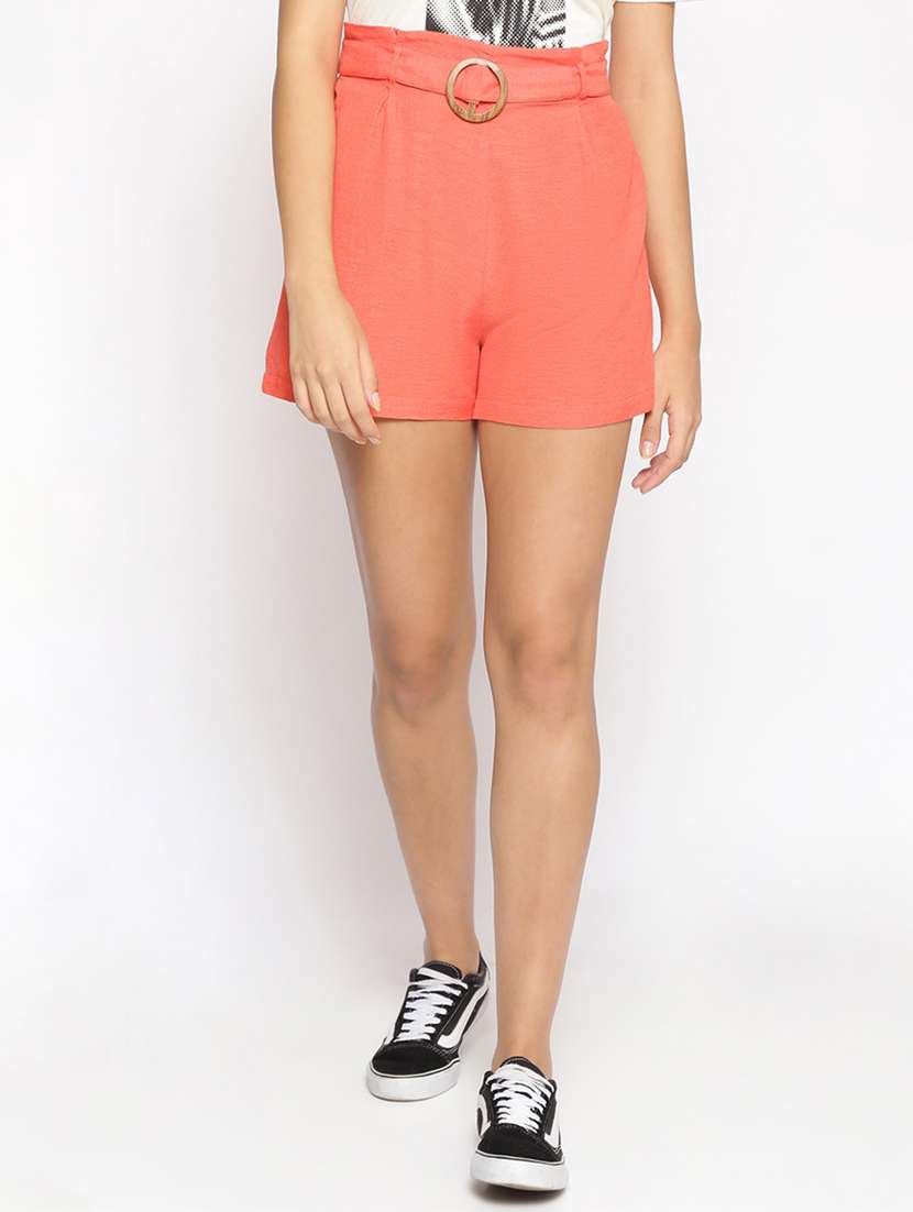 orange cotton tailored shorts