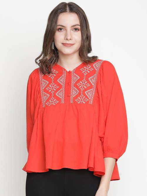 - Opt for this top made up of cotton material and get it in a varied neck design.