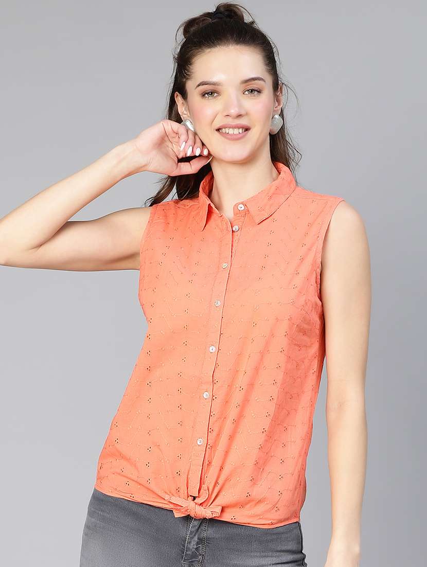 peach cotton regular shirt