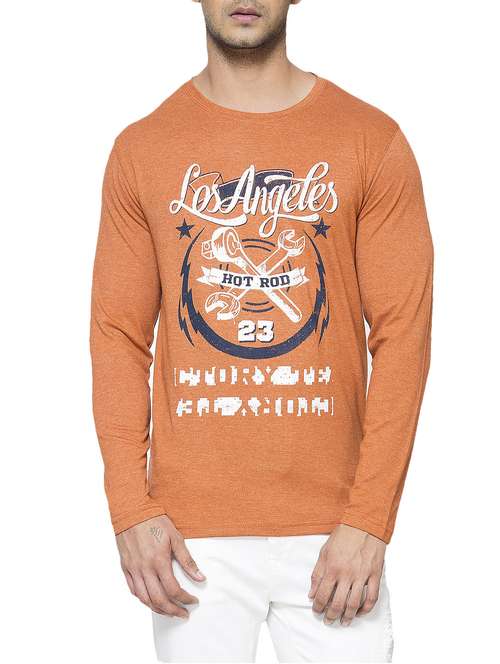 orange cotton front print t-shirt - 14214816 - Very Small Image - 1