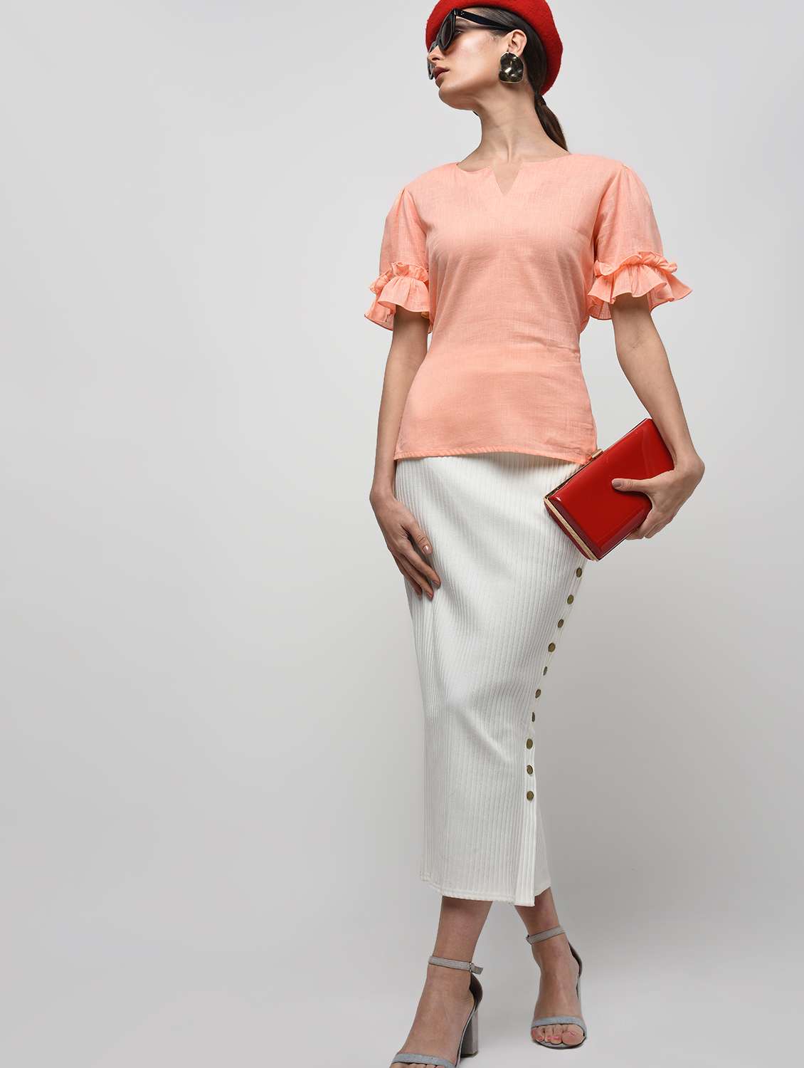 - » ruffle detail tie back top