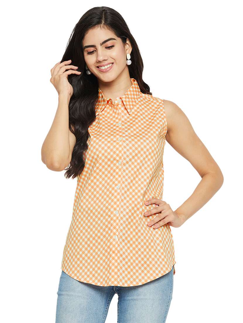 - » orange check print half sleeves shirt