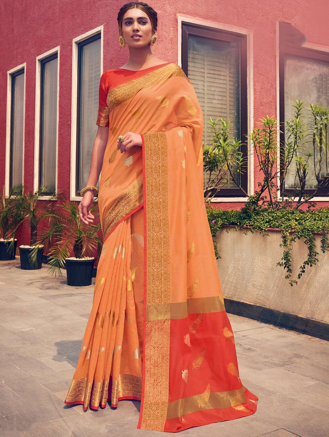 - » women's self design orange colored saree