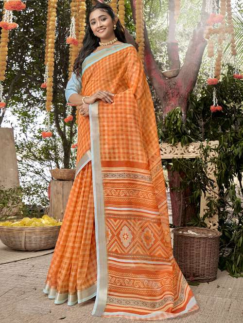 - » contrast bordered checkered woven saree with blouse