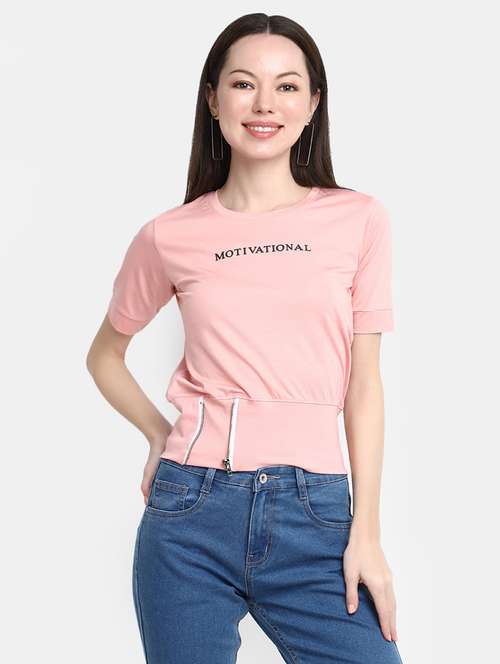 - » women's chest print round neck t-shirt