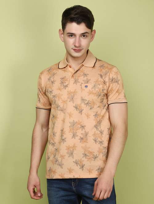 men orange slim fit leaf printed polo t-shirt - 21177864 - Very Small Image - 1