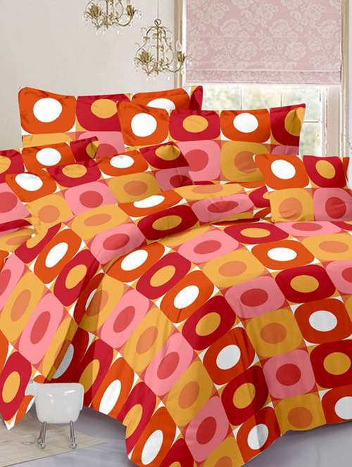 valtellina geometric orange cotton double bed sheet with 2 pillow cover - tc-250