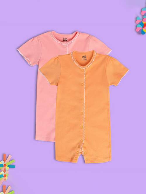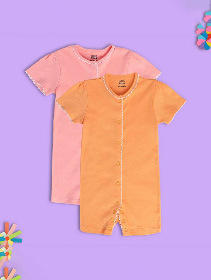 - Onesies and rompers are famous among the infants because it is comfortable and looks cute at the same time. Get one for your little one from MINI KLUB in orange colour.