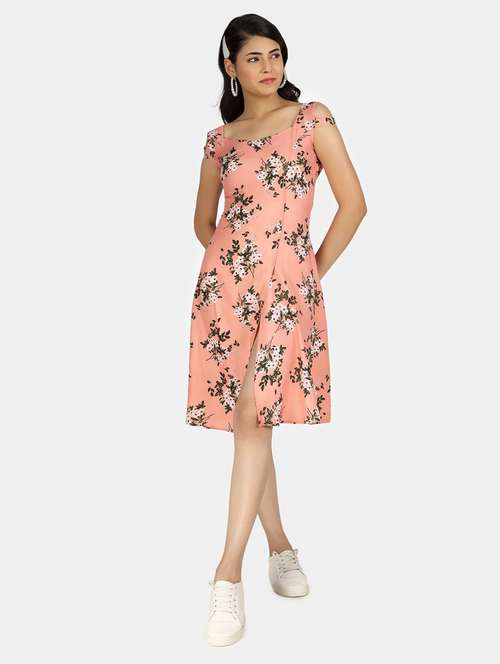 pink crepe slit dress