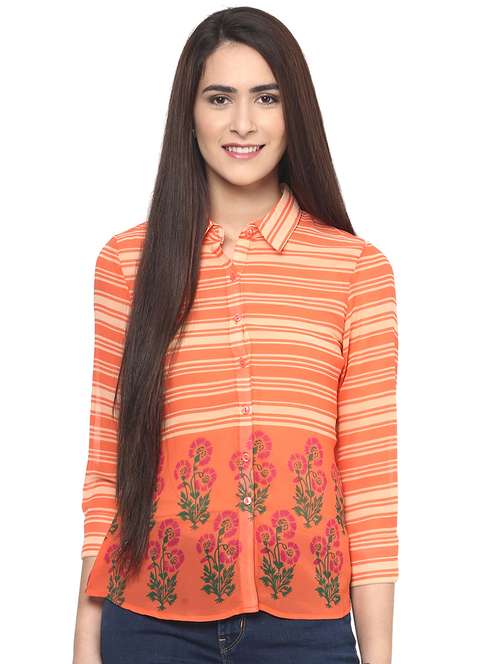 - » curved hem striped shirt