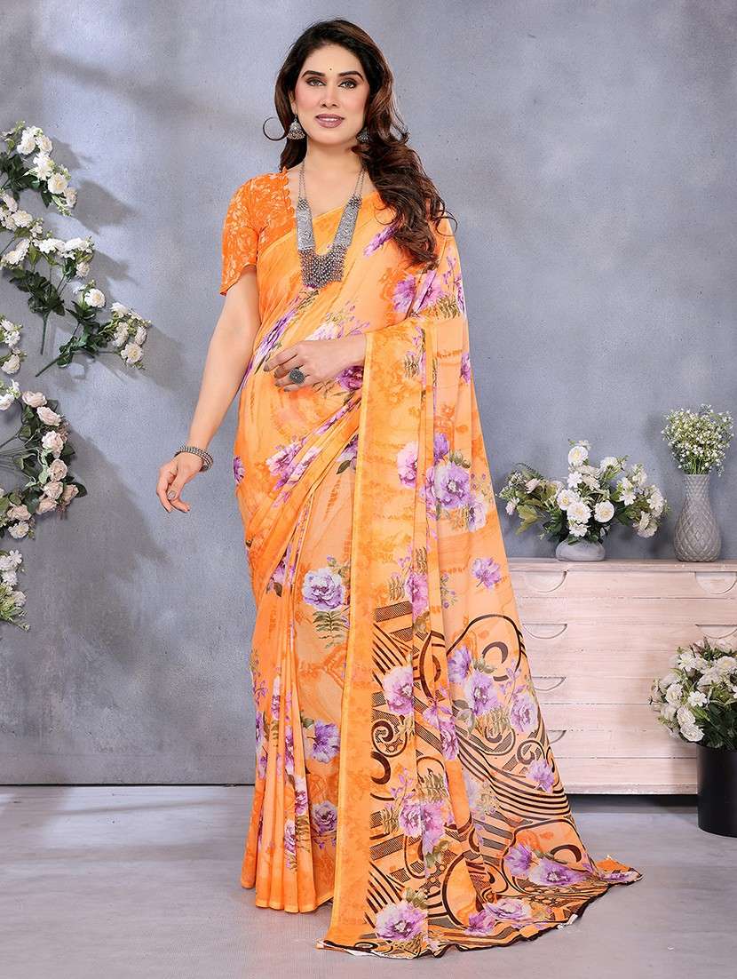 women printed casual wear saree with blouse