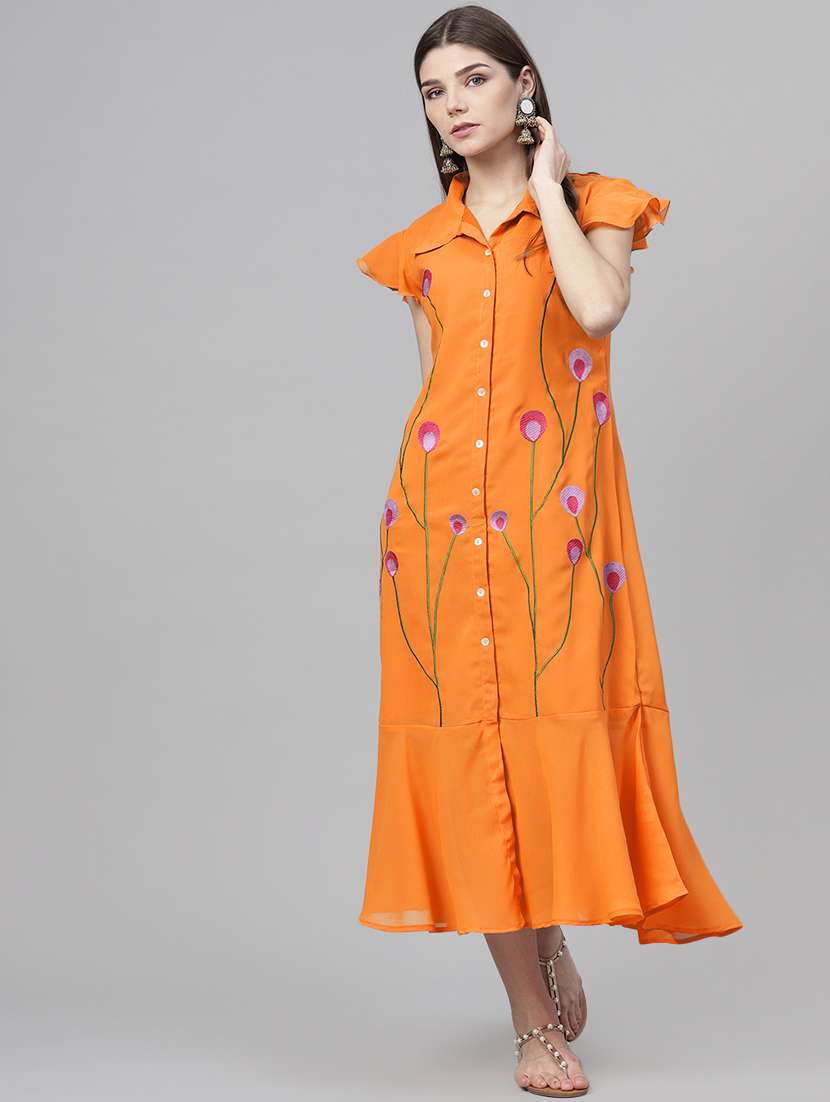 embroidered button up a-line dress - 15898238 - Very Small Image - 1