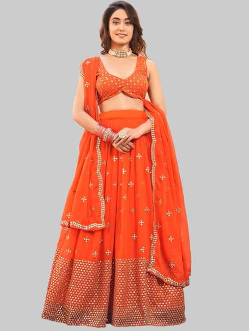 - Are you ready to adorn some alluring lehengas this season? Well, gear up to look gracious as LimeRoad brings to you the most magnificent collection of lehengas from Fashion Basket and in orange colours.