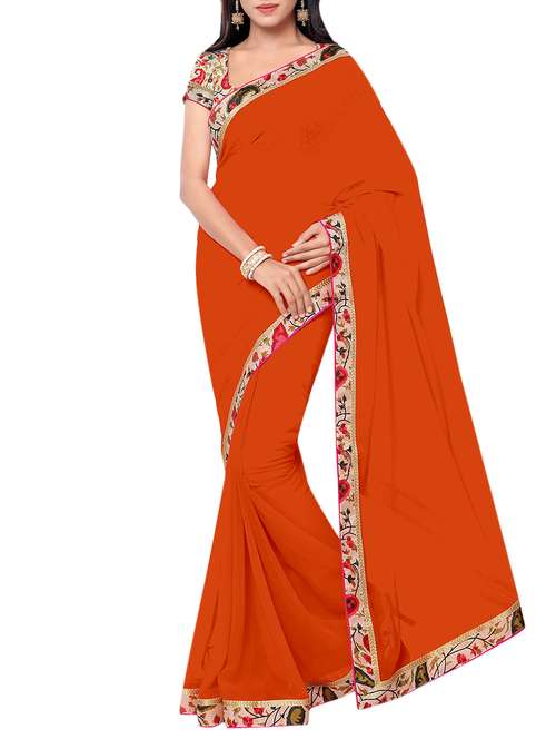 orange georgette bordered saree with blouse - 13860552 - Very Small Image - 1