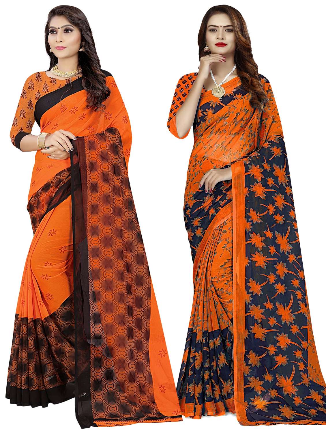 pack of 2 printed saree with blouse