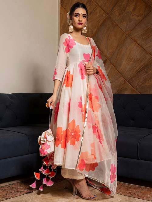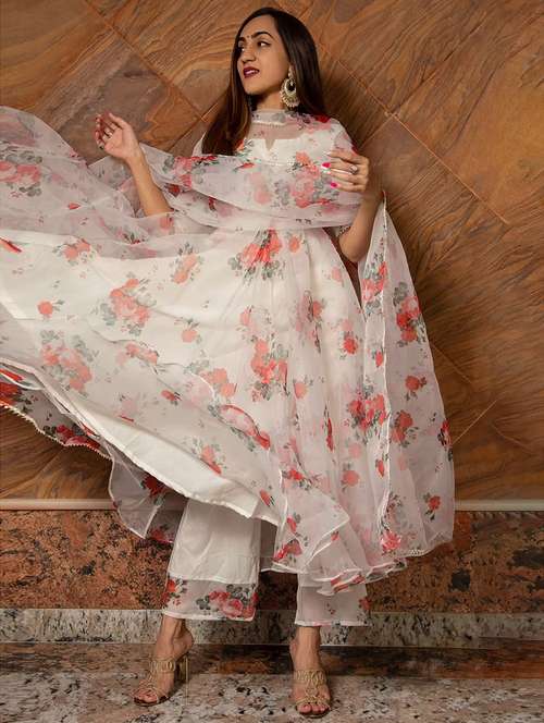 - Find gorgeous sets of ethnic wears in trending designs in white colors suitable for festive wear of occasions.
