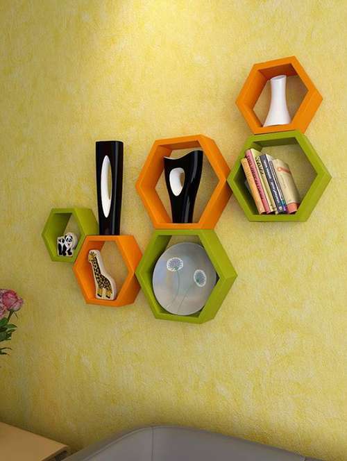 - » home deco hexagon shape storage wall shelves set of 6