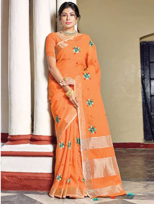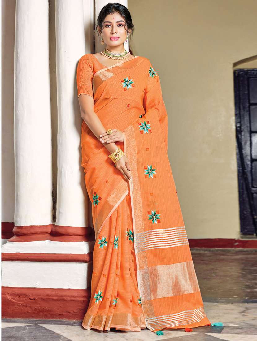 - » women's floral orange colored saree