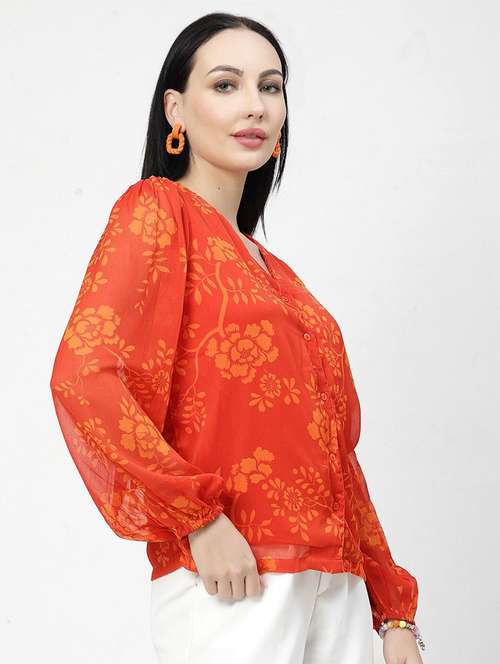 women orange polyester regular shirt