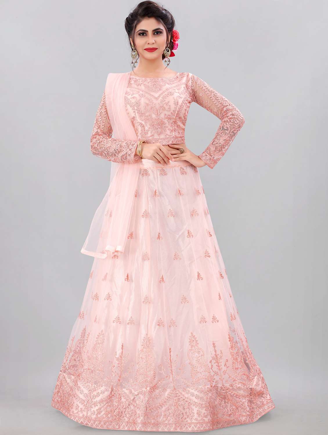 pink colored flared lehenga