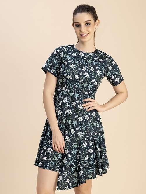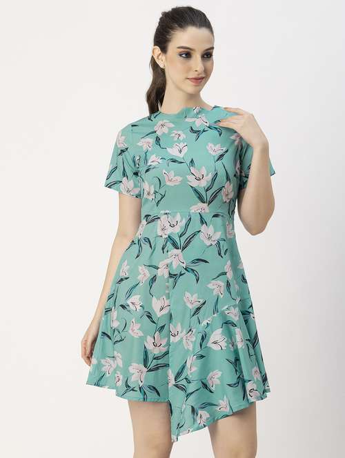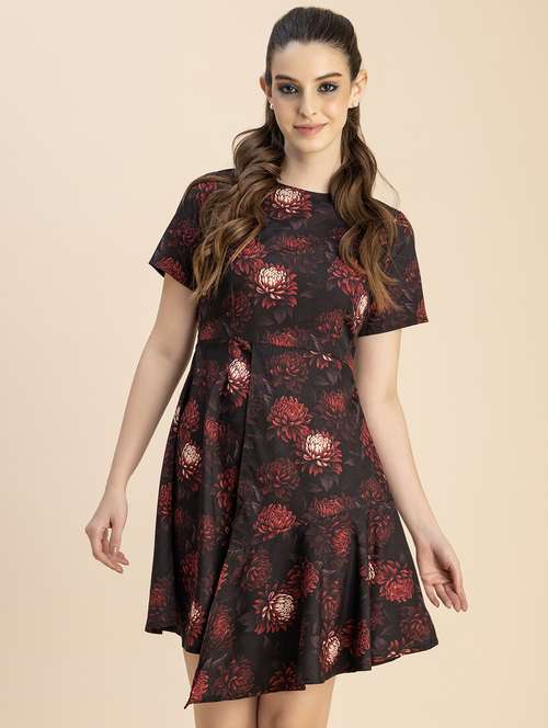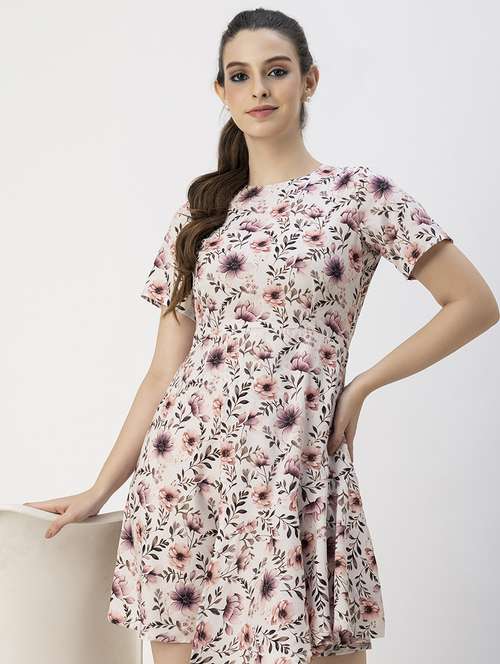 - Dress up in a soothing pattern and don this dress made of poly crepe material.