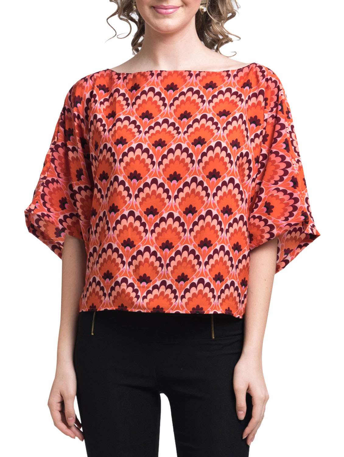 orange solid friendly boat neck top