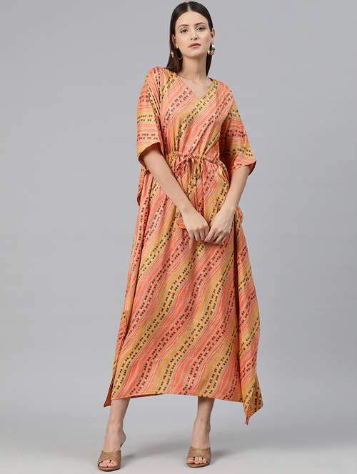 - Time to add comfortable layers to your style statement with timeless pieces in your wardrobe and get kaftans in orange colours exclusively available on LimeRoad.