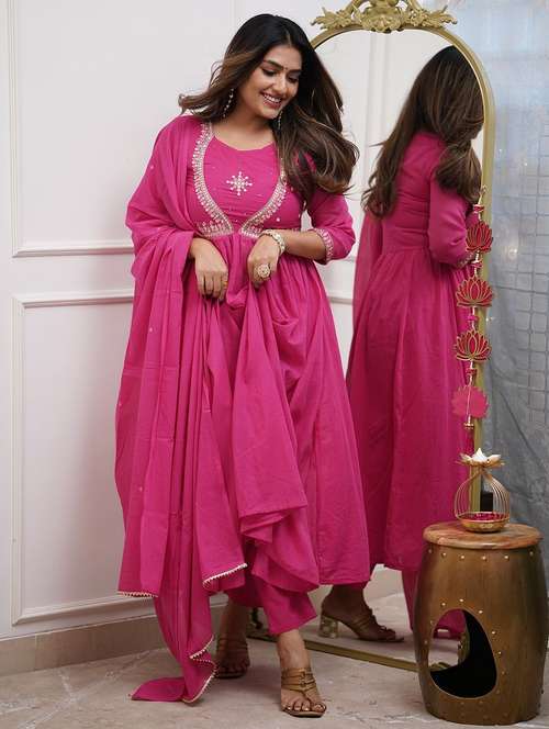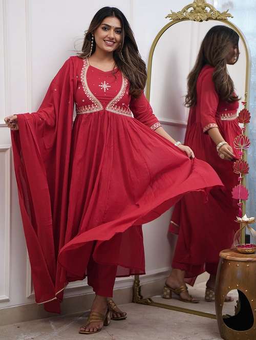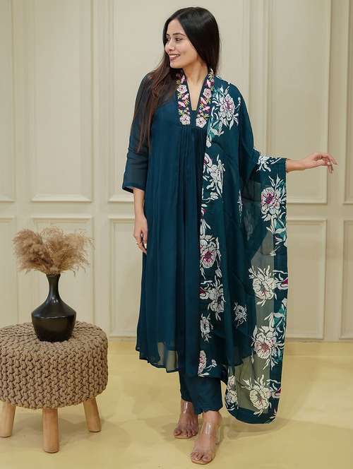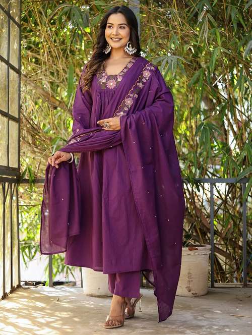 - Browse through the latest range of ethnic sets for women with tailored sleeve designs with embroidered works.