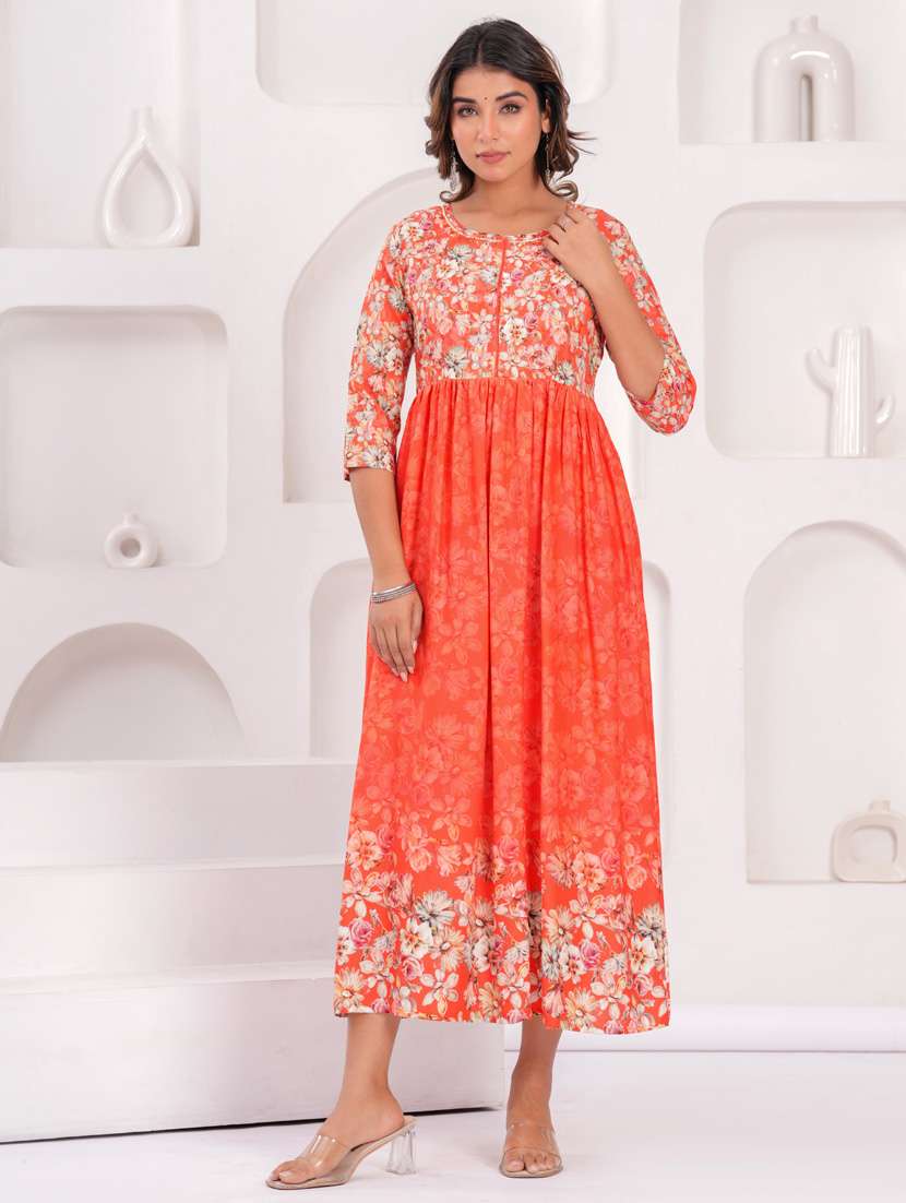 - Look and feel your best with the fresh collection of orange colorful ethnic dresses with trending diverse designs and silhouettes to choose from.