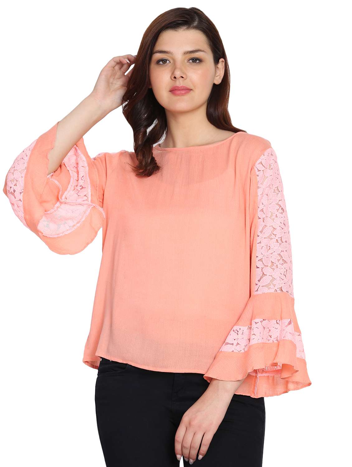 - » laced panel bell sleeved top