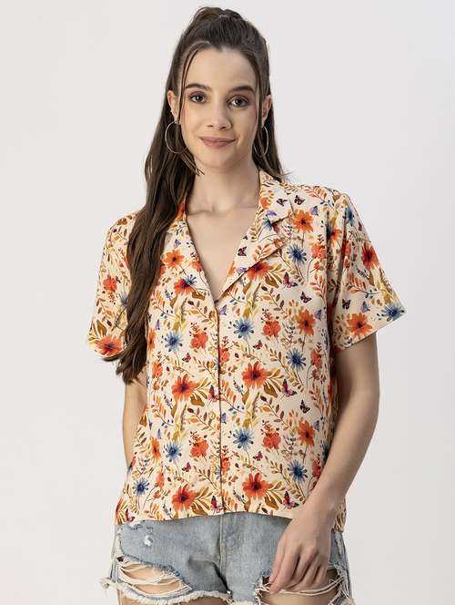 orange rayon floral shirt