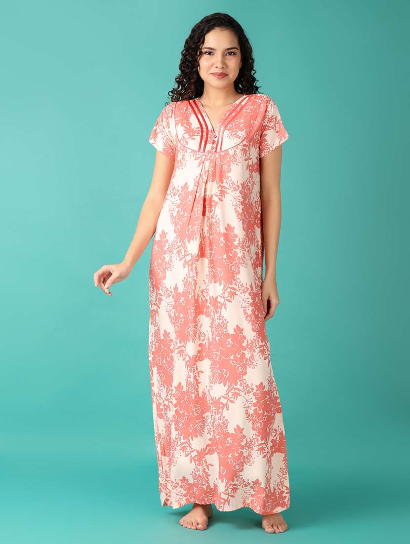 women peach floral short sleeve nighty - 21533712 - Very Small Image - 1