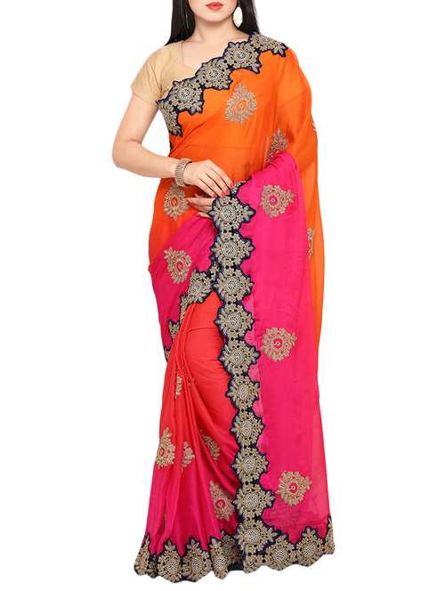 - » pink embroidered satin saree with blouse