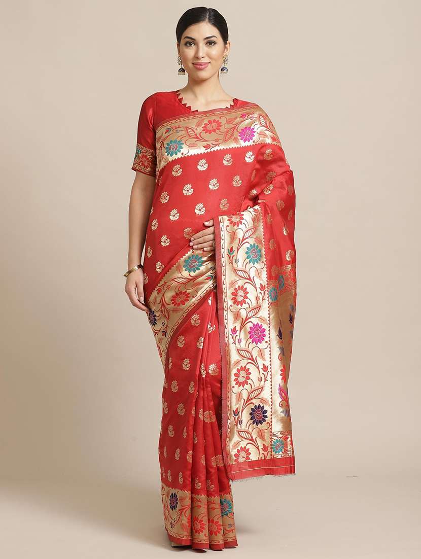 women red self design paithani saree with blouse