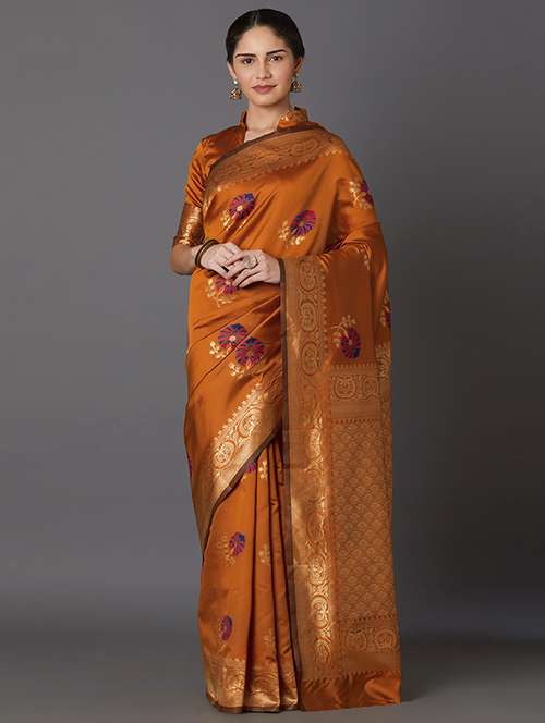 self design banarasi saree with blouse - 16954545 - Very Small Image - 1