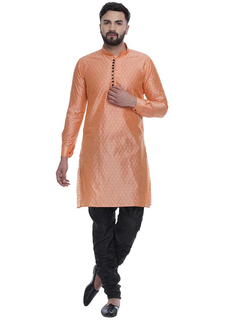 - » peach jacquard silk blend long kurta