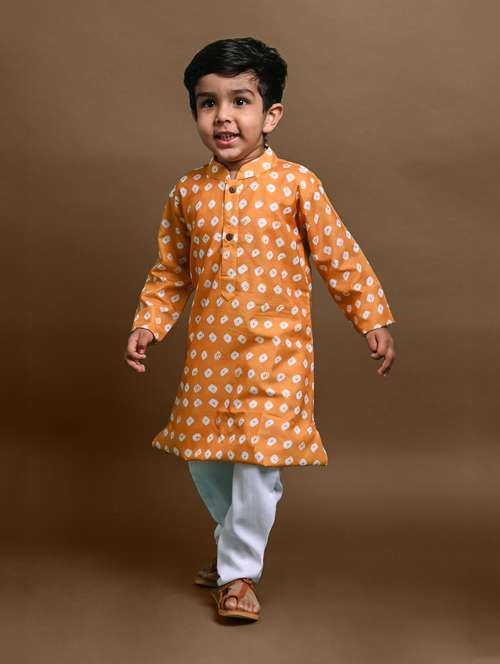 boys printed long sleeve kurta bottom set