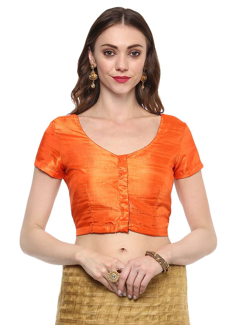 - » orange silk solid blouse