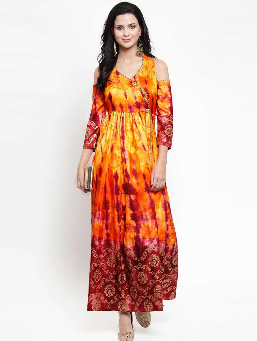 shibori print silk anarkali kurta