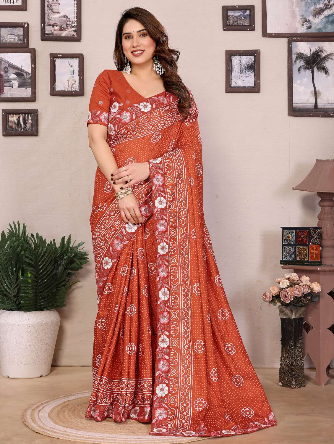 - » women bandhani embroidered bordered saree with blouse