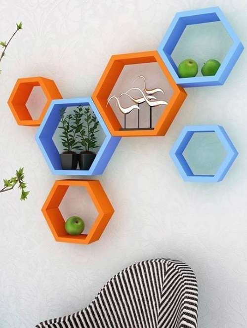 - » home deco hexagon shape storage wall shelves set of 6