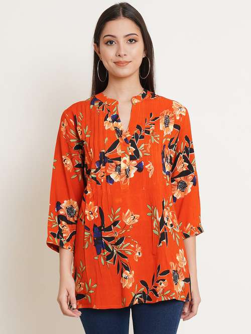 women's straight mandarin neck top - 19298361 - Very Small Image - 1